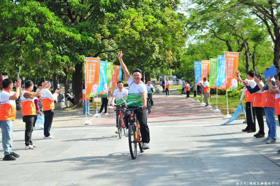 伴随着鸣笛声,数百名员工化身骑手,在领骑教练、押队教练及安保安全车的护航下,开启全长11.5公里的环湖骑行之旅。骑行路线从荔湖广场平台向西延伸,串联起荔堤、荔月清华、荔湖花海、荔枝博览园等多个景点,碧水蓝天相映,碧道蜿蜒其间,骑手们在骑行中沉浸式感受4000亩荔湖的生态之美,见证环南昆山—罗浮山县镇村高质量发展引领区建设成果。沿途设置的趣味打卡点成为互动亮点,大家纷纷驻足,用镜头记录美好瞬间,在运动中探索增城生态之美。