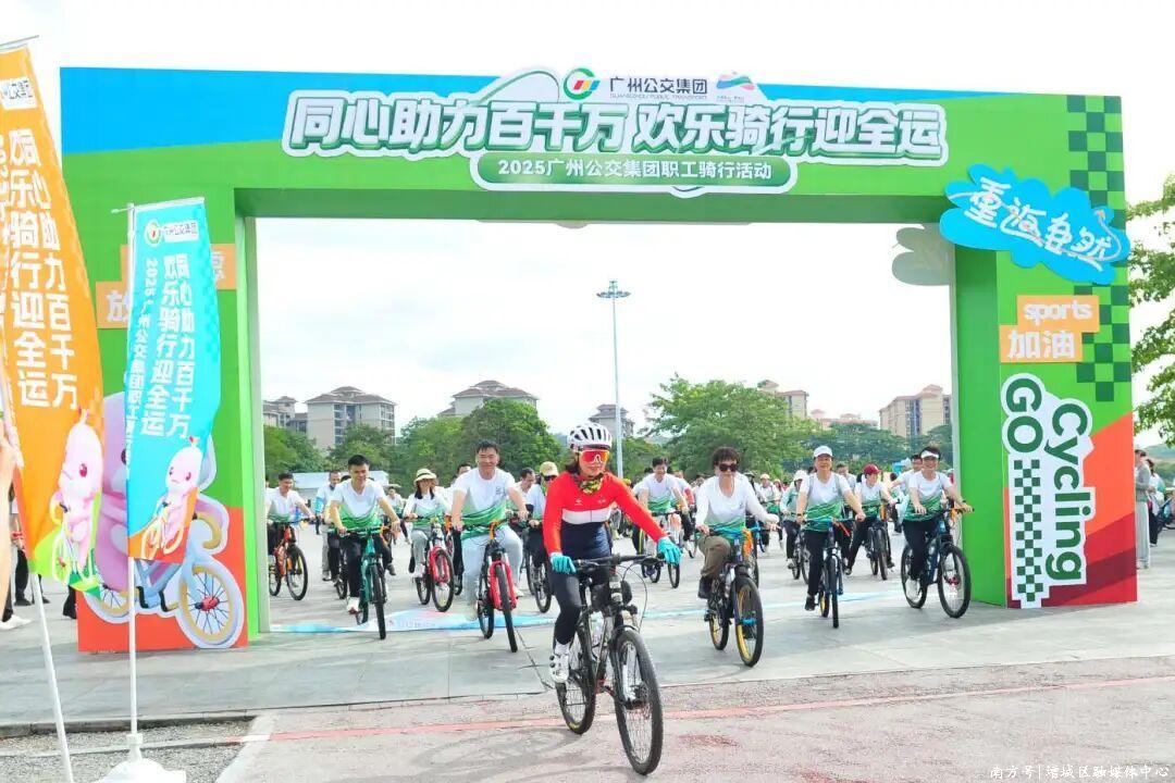 10月25日,在第十五届全运会暨残特奥会即将隆重开幕之际,由广州市公共交通集团有限公司工会委员会主办、广州巴士集团有限公司工会委员会承办的“同心助力百千万,欢乐骑行迎全运”2025年广州公交集团职工骑行活动在增城区荔湖公园举行。500名公交人以绿色欢乐骑行迎全运。